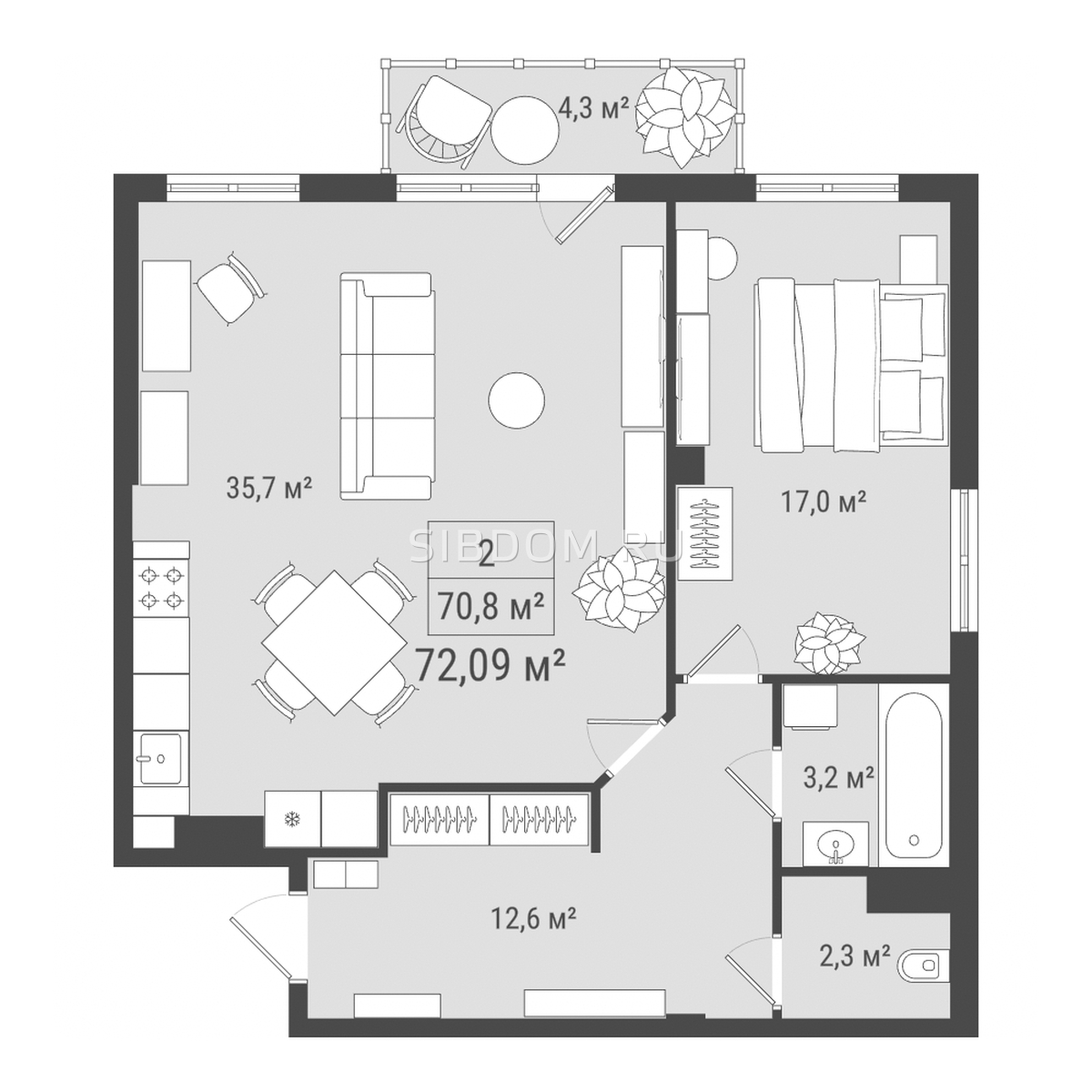 Всего в двухподъездном ЖК на Ключевской 90 квартир площадью от 40 до 86 кв.м