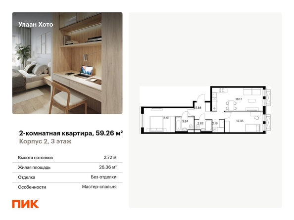 Продаётся 2-комн.квартира площадью 59.26 кв.м на 6 этаже 10 этажного дома (Корпус 2, секция 3) проекта ПИК Улаан Хото. Светлый просторный подъезд на уровне земли, функциональная планировка, большие окна. <br> <br>«Улаан Хото» — это уникальный и знаковый проект, расположенный в самом сердце Улан-Удэ. ПИК создаёт его с уважением к традициям, вдохновляясь культурой Бурятии. Мы учли все детали: от планирования территории до создания современной архитектуры с использованием традиционных элементов. <br> <br>ПИК создаст в Улан-Удэ будущую точку притяжения, которая подарит жителям новый стиль жизни — жилой квартал в центре города, где в шаговой доступности есть всё для комфорта, образования и культурного досуга. Помимо 15 жилых домов, в проекте появится два детских сада, школа, поликлиника и многоуровневые паркинги. Ещё на территории квартала появится обновленный технопарк «Кванториум», который объединит молодые таланты в сфере высоких технологий. <br> <br>Вдоль «Улаан Хото» протянется прогулочный бульвар с буддийской ступой. Он соединит Национальный музей и театр «Байкал», которые будут построены в национальном стиле с использованием архитектурных элементов и цветов, отражающих культуру Бурятии. Кроме того, ПИК отреставрирует старинные деревянные дома, которые признаны объектами культурного наследия, и вдохнет в них новую жизнь. <br> <br>В «Улаан Хото» можно выбрать планировку под любой жизненный сценарий: есть варианты с мастер-спальней, кухней-гостиной и гардеробной. Из окон квартир, расположенных на верхних этажах, будет открываться панорамный вид на город и живописный пейзаж реки. В проекте можно выбрать квартиру с предчистовой отделкой или без отделки. <br> <br>Мы создадим максимум комфорта для жителей. Во дворах, свободных от машин, появятся приватные пространства для игры, спорта и спокойного отдыха. А на первых этажах расположатся коммерческие помещения, где откроются кафе и рестораны. Здесь можно будет приятно провести время с семьей или встретиться с друзьями. Артикул - 992891