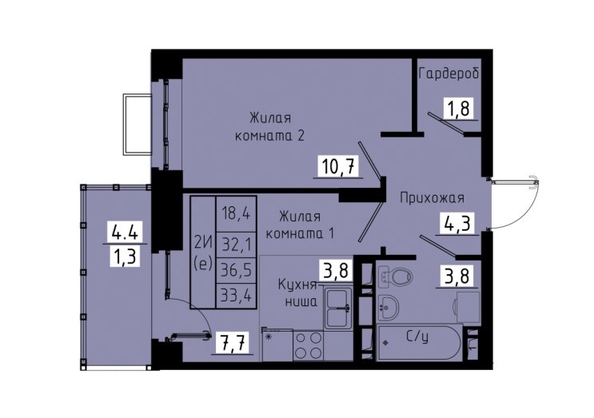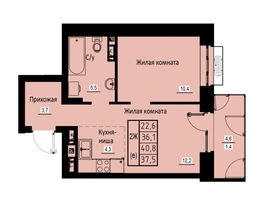 Общая площадь квартиры — 33.4 кв.м. Тип дома — монолит-кирпич. Компания-застройщик — Зеленые кварталы.