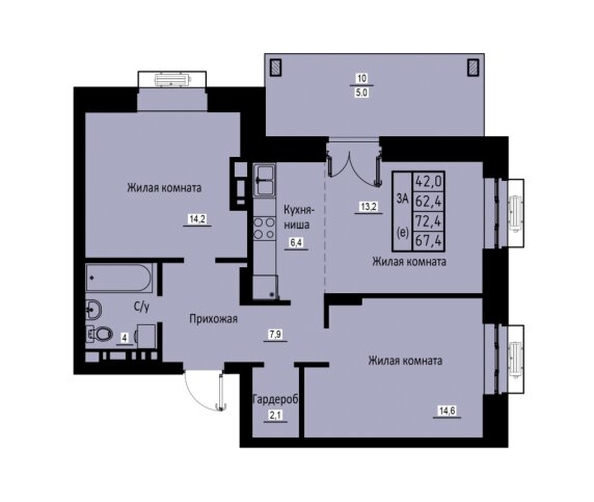 Общая площадь квартиры — 67.4 кв.м. Тип дома — монолит-кирпич. Компания-застройщик — Зеленые кварталы.