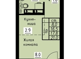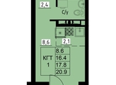 Общая площадь квартиры — 17.8 кв.м. Тип дома — монолит-кирпич. Компания-застройщик — Зеленые кварталы.