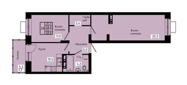 Общая площадь квартиры — 55.7 кв.м. Тип дома — монолит-кирпич. Компания-застройщик — Зеленые кварталы.