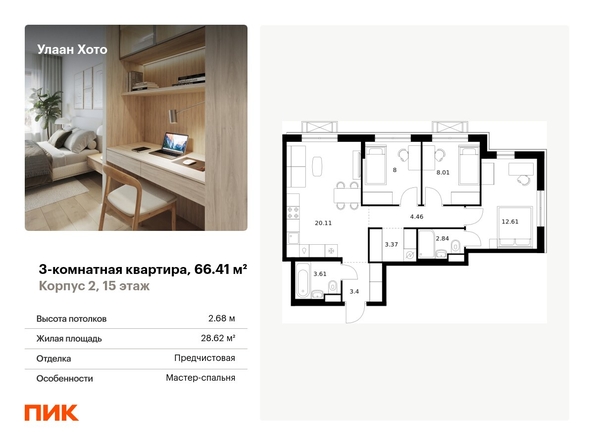 Продаётся 3-комн.квартира площадью 66.41 кв.м на 15 этаже 16 этажного дома (Корпус 2, секция 6) проекта ПИК Улаан Хото. Светлый просторный подъезд на уровне земли, функциональная планировка, большие окна. <br> <br>«Улаан Хото» — это уникальный и знаковый проект, расположенный в самом сердце Улан-Удэ. ПИК создаёт его с уважением к традициям, вдохновляясь культурой Бурятии. Мы учли все детали: от планирования территории до создания современной архитектуры с использованием традиционных элементов. <br> <br>ПИК создаст в Улан-Удэ будущую точку притяжения, которая подарит жителям новый стиль жизни — жилой квартал в центре города, где в шаговой доступности есть всё для комфорта, образования и культурного досуга. Помимо 15 жилых домов, в проекте появится два детских сада, школа, поликлиника и многоуровневые паркинги. Ещё на территории квартала появится обновленный технопарк «Кванториум», который объединит молодые таланты в сфере высоких технологий. <br> <br>Вдоль «Улаан Хото» протянется прогулочный бульвар с буддийской ступой. Он соединит Национальный музей и театр «Байкал», которые будут построены в национальном стиле с использованием архитектурных элементов и цветов, отражающих культуру Бурятии. Кроме того, ПИК отреставрирует старинные деревянные дома, которые признаны объектами культурного наследия, и вдохнет в них новую жизнь. <br> <br>В «Улаан Хото» можно выбрать планировку под любой жизненный сценарий: есть варианты с мастер-спальней, кухней-гостиной и гардеробной. Из окон квартир, расположенных на верхних этажах, будет открываться панорамный вид на город и живописный пейзаж реки. В проекте можно выбрать квартиру с предчистовой отделкой или без отделки. <br> <br>Мы создадим максимум комфорта для жителей. Во дворах, свободных от машин, появятся приватные пространства для игры, спорта и спокойного отдыха. А на первых этажах расположатся коммерческие помещения, где откроются кафе и рестораны. Здесь можно будет приятно провести время с семьей или встретиться с друзьями. Артикул - 993222