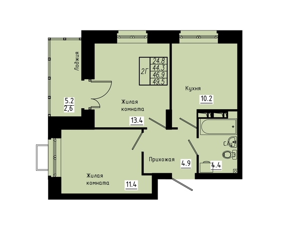 Общая площадь квартиры — 46.9 кв.м. Тип дома — монолит-кирпич. Компания-застройщик — Зеленые кварталы.