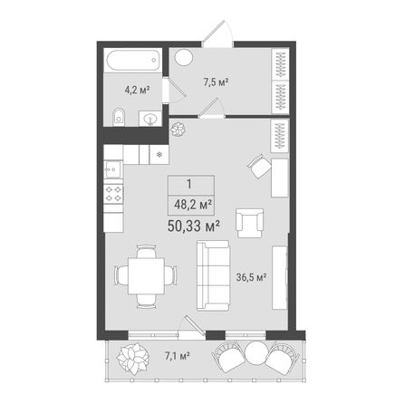 Общая площадь квартиры — 50.33 кв.м. Тип дома — монолит-кирпич. Компания-застройщик — СЗ КЛЮЧСТРОЙ.