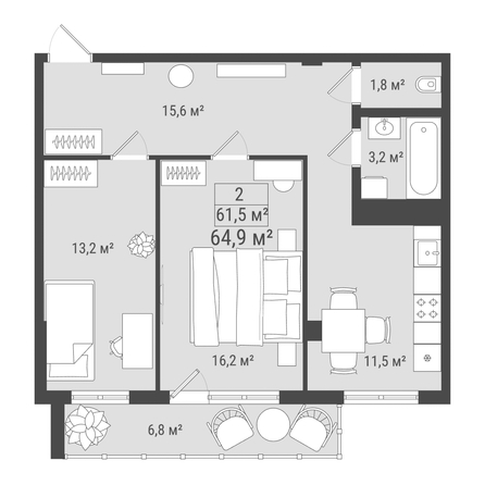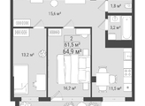 Общая площадь квартиры — 64.9 кв.м. Тип дома — монолит-кирпич. Компания-застройщик — СЗ КЛЮЧСТРОЙ.
