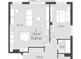 Общая площадь квартиры — 72.09 кв.м. Тип дома — монолит-кирпич. Компания-застройщик — СЗ КЛЮЧСТРОЙ.