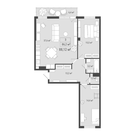 Общая площадь квартиры — 88.12 кв.м. Тип дома — монолит-кирпич. Компания-застройщик — СЗ КЛЮЧСТРОЙ.