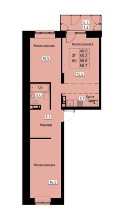 Общая площадь квартиры — 56.6 кв.м. Тип дома — монолит-кирпич. Компания-застройщик — Зеленые кварталы.