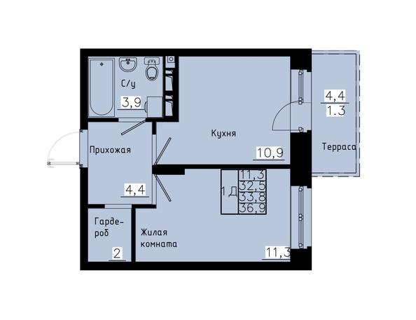 Общая площадь квартиры — 33.8 кв.м. Тип дома — монолит-кирпич. Компания-застройщик — Зеленые кварталы.