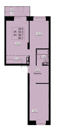 Общая площадь квартиры — 56.7 кв.м. Тип дома — монолит-кирпич. Компания-застройщик — Зеленые кварталы.