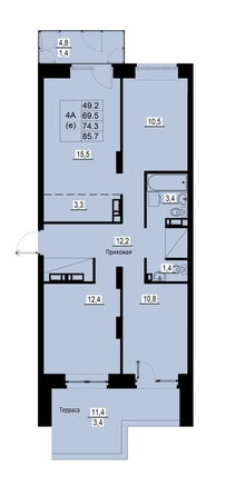 Общая площадь квартиры — 74.3 кв.м. Тип дома — монолит-кирпич. Компания-застройщик — Зеленые кварталы.