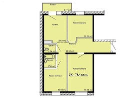 Общая площадь квартиры — 74.19 кв.м. Тип дома — монолит-кирпич. Компания-застройщик — Квартал-Строй.